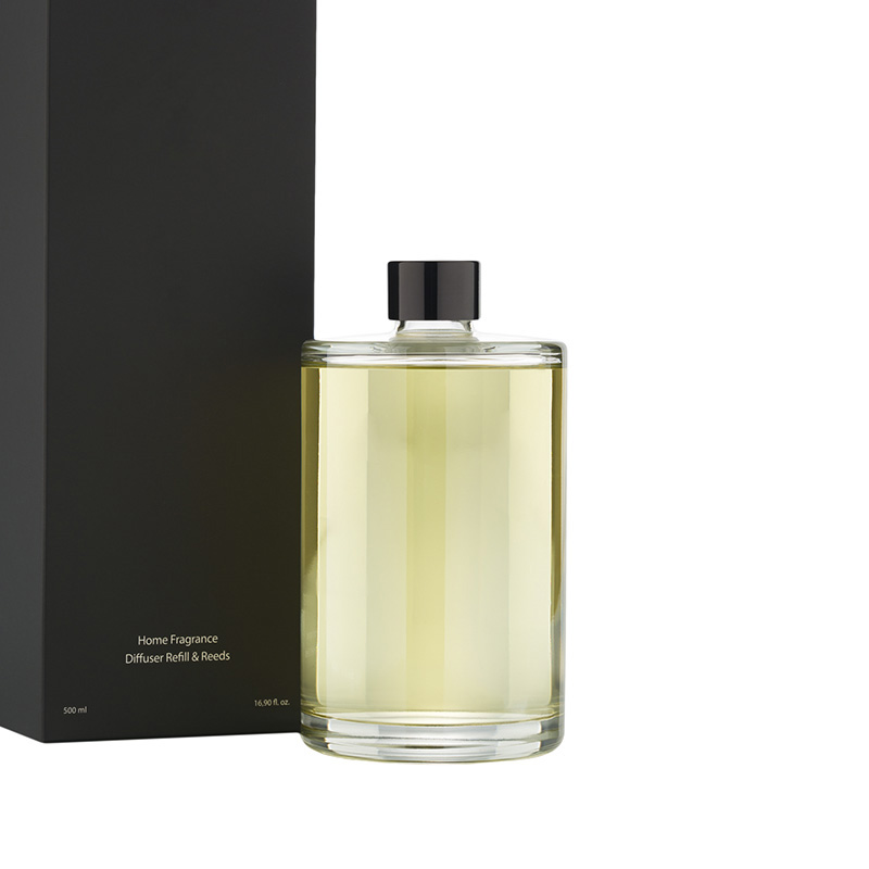 Recharge de tous les parfums de la collection Lui Lei pour diffuseur d'arômes. Flacon en verre de 500 ml, bâtonnets en rotin à haute absorption.
